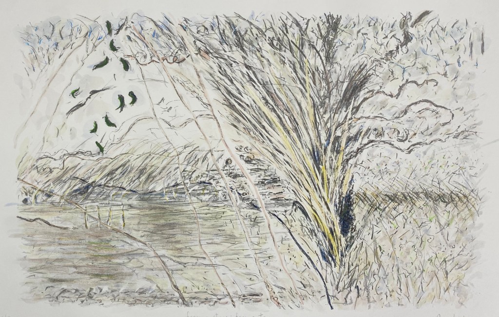 Lord, From a stone: from a creek, 2025, T/P hand-coloured lithograph, off-white BFK Rives, image 39 x 60 cmBetween Rushes and Prickles, 2024, wood engraving on paper, 15 x 10 cm Lord, Ache I , 1/10, 2005, screen print, image 26.8 x 19 cm