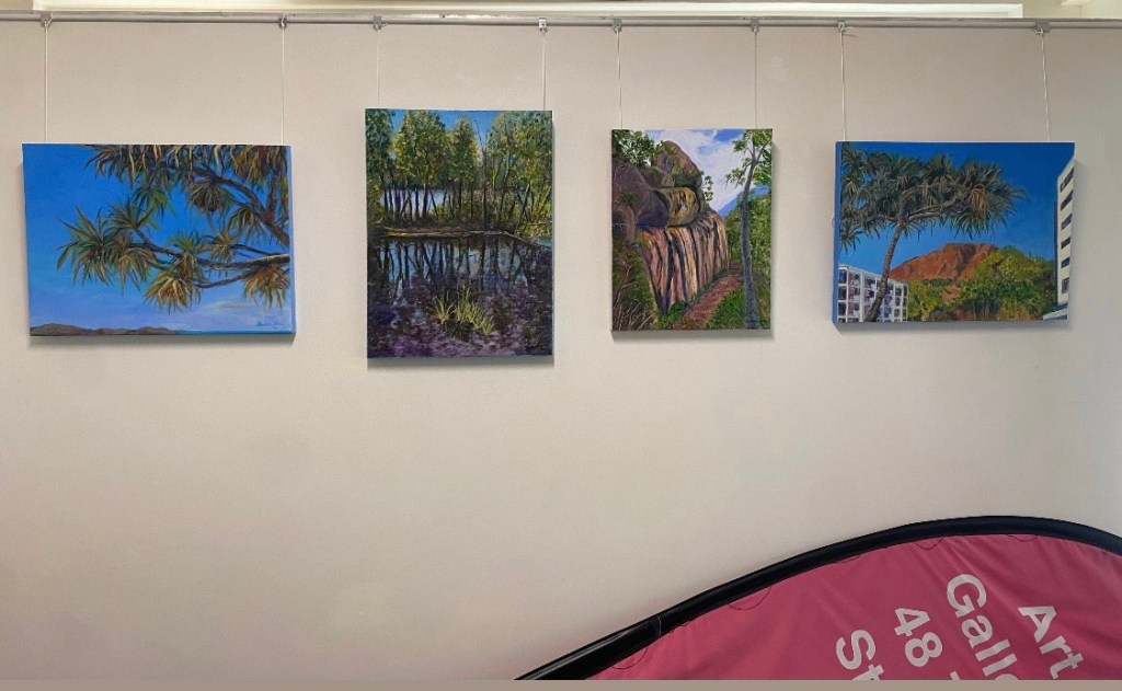 Laurna Love, Townsville. by Night, 2024, acrylic on canvas, 45 x 90 cm $540 Laurna Love, Castle Hill Goat Track, 2024, acrylic on canvas, 40 x 50 cm $360Laurna Love, Hawkings Point Lookout Walk, Magnetic Island, 2024, acrylic on canvas, 50 x 30 cm $360 Laurna Love, Horseshoe Bay Lagoon, 2024, acrylic on canvas, 60 x 45 cm SoldLaurna Love Townsville from Picnic Bay, 2023, acrylic on canvas, 30 x 40 cm $300 Laurna Love Rocks Arcadia, Magnetic Island, 2023, acrylic on canvas, 40 x 30 cm $300 Laurna Love, Peaceful Outlook Geoffrey Bay, acrylic on canvas, 30 x 40 cm $300