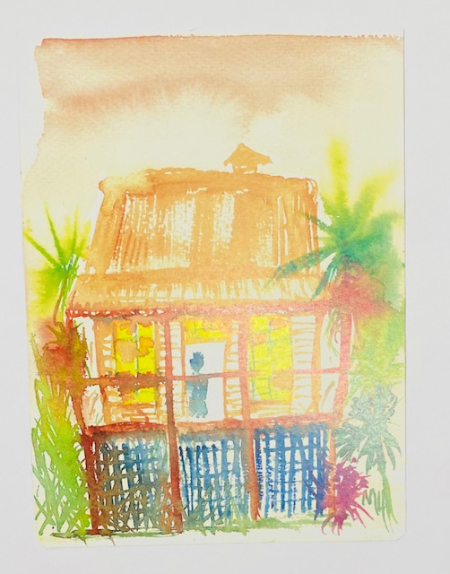 Warren Ogden Stoneware ceramic vessels with blue flowers, $150 each Lace Monitor in Townsville garden, 2025Anne Lord, Flow series. Acrylic on paper photographed for digital printing. 45 x 60 cm. available POALord, Flow series, paint on paper, for digital printing, (detail), size and price Price on application (sometimes price on asking), available, POA Lord Anne, Flow series #24, 2024, acrylic colours and pouring medium on Magnani paper 56 x 76 cm $500Margot Laver 3 paintings on Kozo paper over wood Mark Hammersley Tropical houses, digital reproduction from watercolours, Image size SMALL 19.5 x 15 cm $60: LARGE 30 x 21 cm $75
